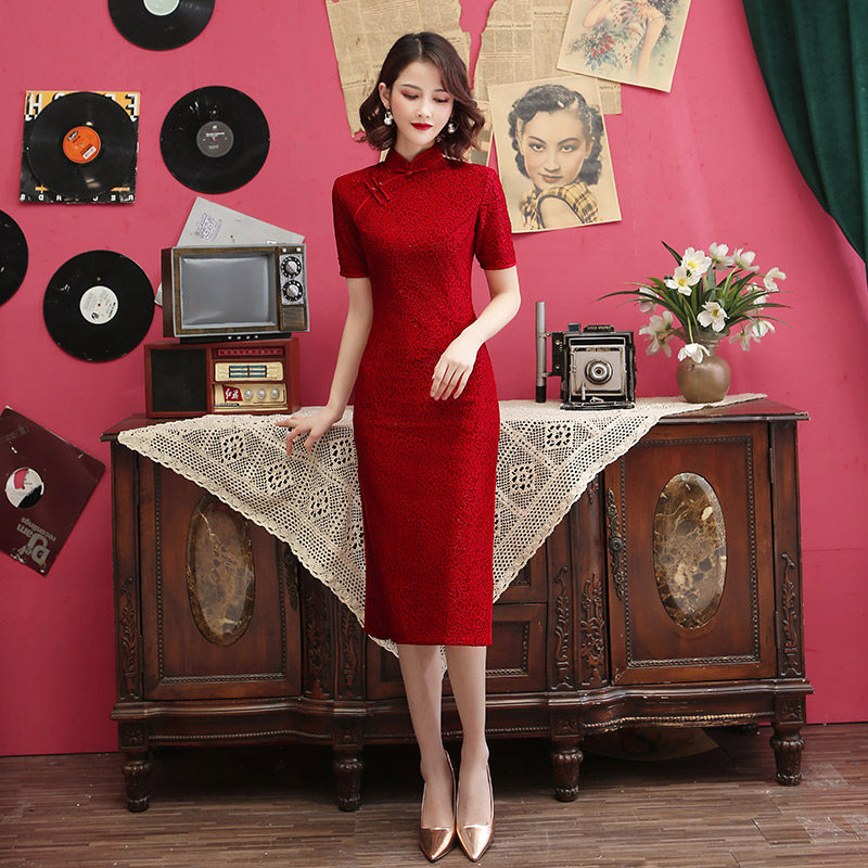 Red qipao gaokao sends test for young models 2022 The new middle school mother is married to the toast and the bride's lace
