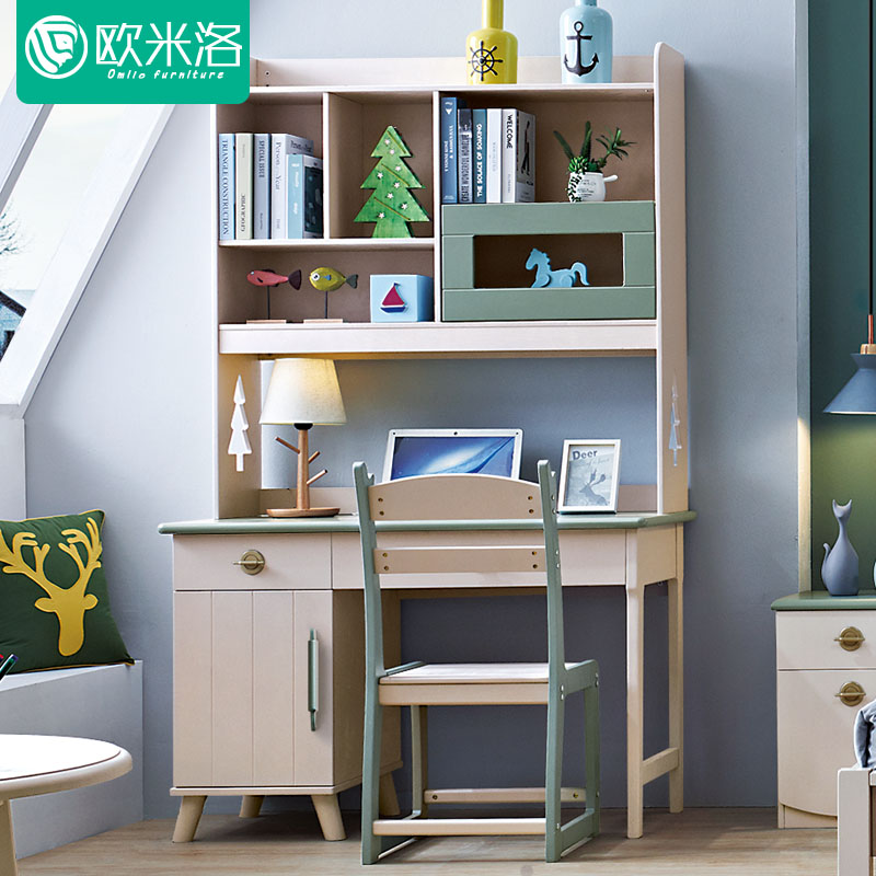 Nordic all solid wood right angle desk bookshelf combination student desk bookcase one simple modern computer desk