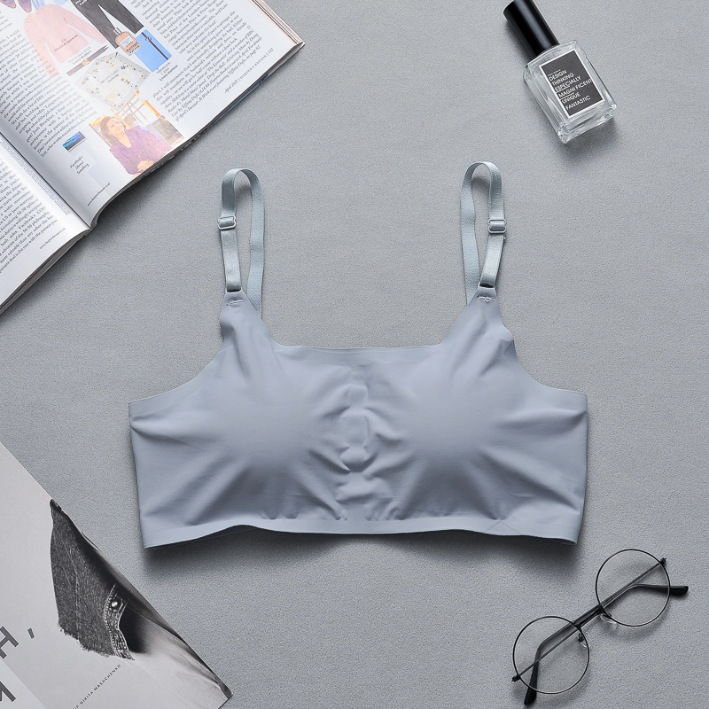 Ice silk three rows of buttons wrapped in chest lingerie girl student anti-walking light harnesses Breasted Breast Pops Milk small No steel ring bra thin
