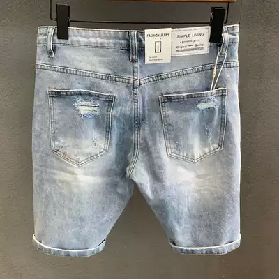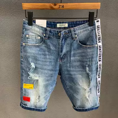 Ripped denim shorts men's five-point pants summer thin slim-fit all-match Korean version of the trend men's beggar five-point pants breeches