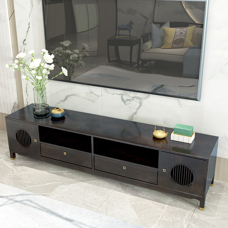 New Chinese Solid Wood TV Cabinet Zen Living-room Sample Board Room TV Cabinet Modern Ground Cabinet Retro Furniture-Taobao