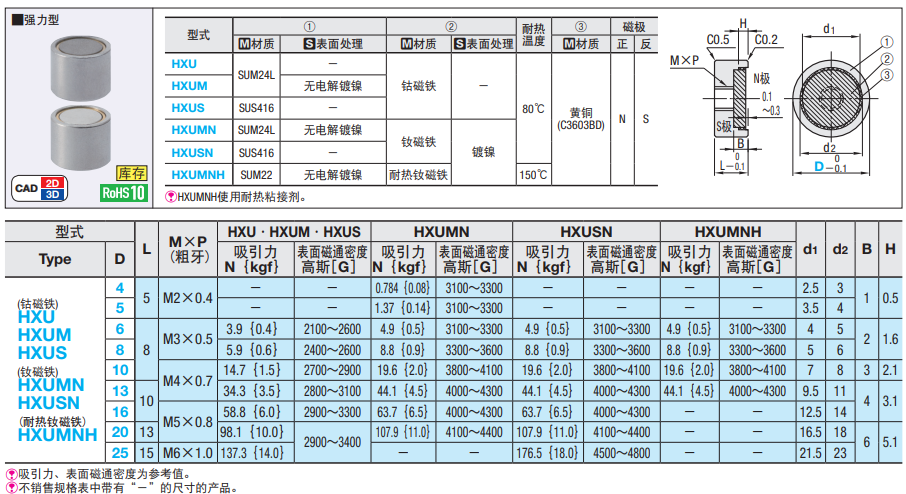 With seat magnet HXU HXUM HXUS6 8 10 13 13 20 20 25
