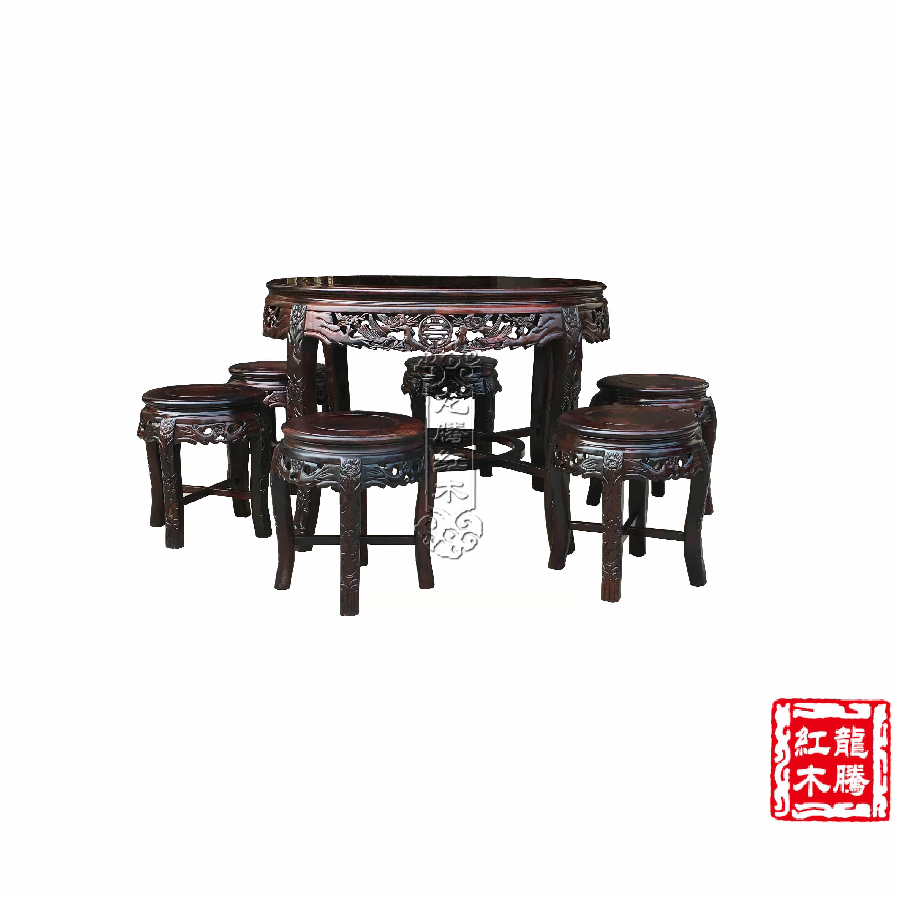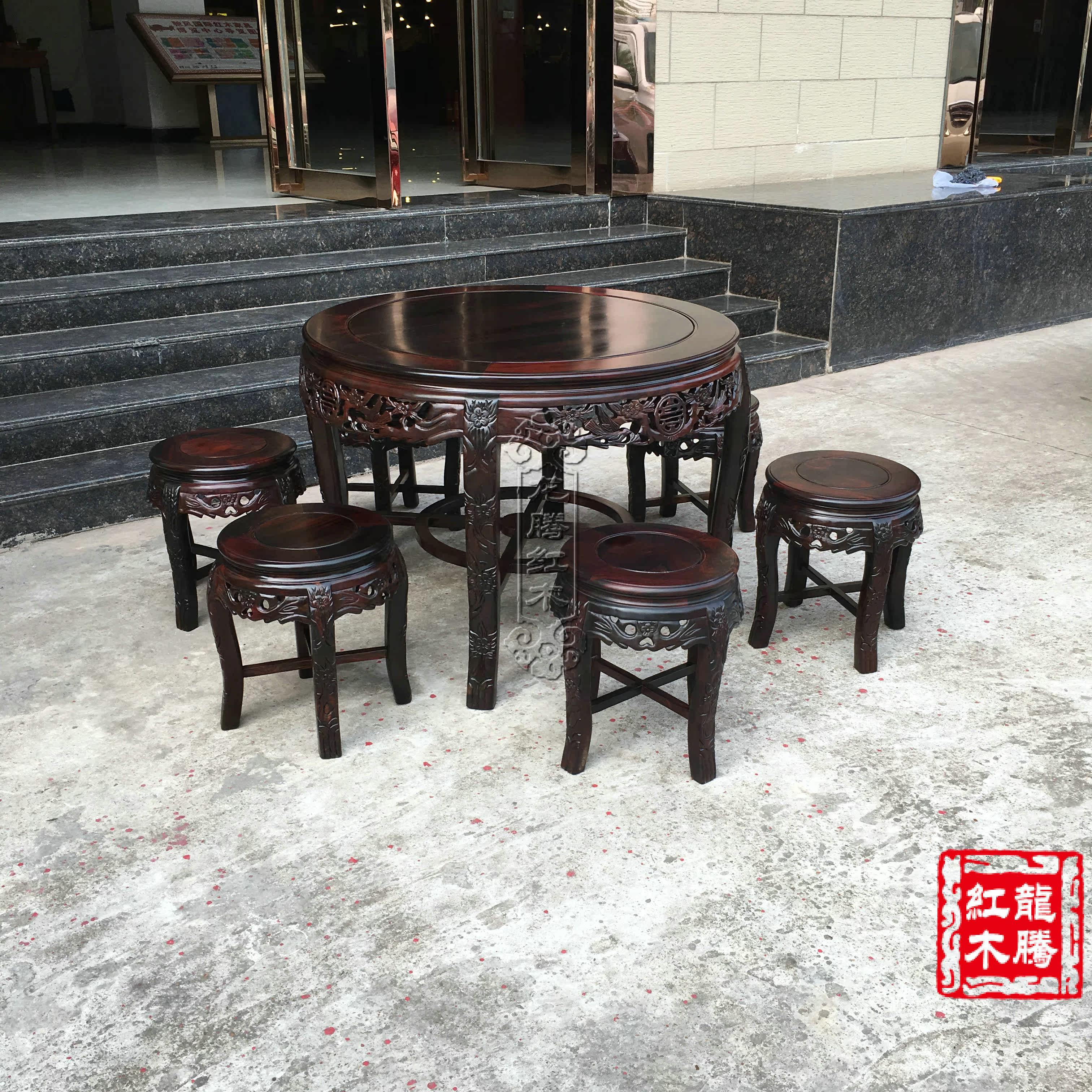 Mahogany boutique furniture Laos red rosewood round dining table cozhi yellow sandalwood solid wood plum leisure table