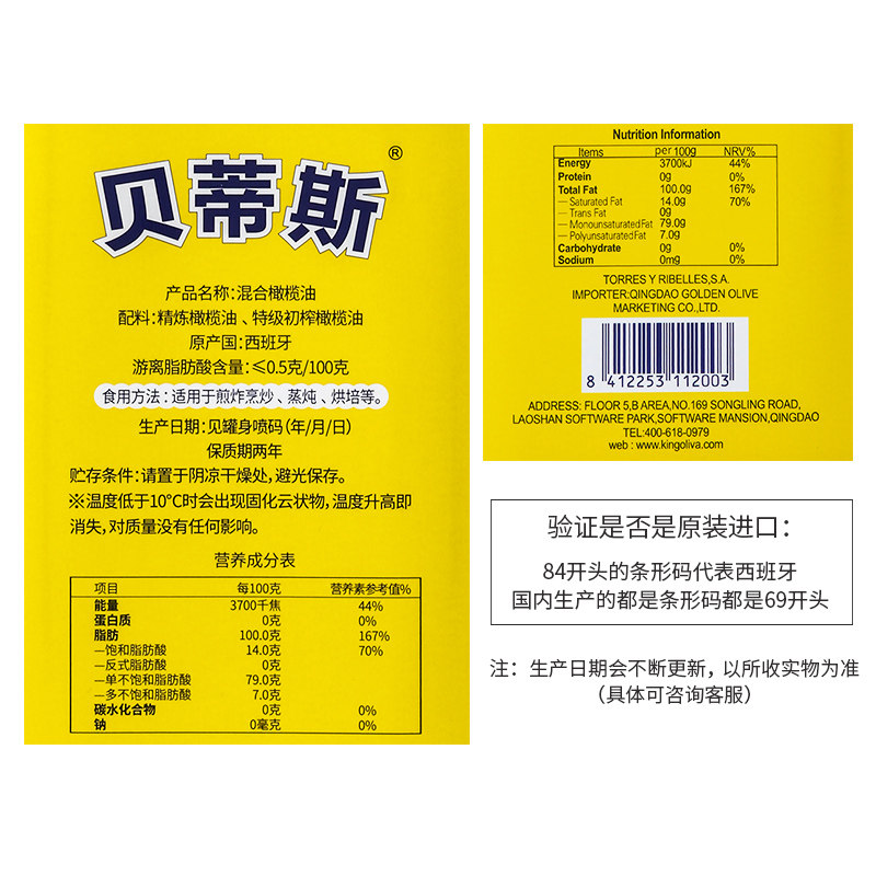 (Original Imported) Betis official pure olive oil 2 5L gift bags with special grade preliminary-pressed sautéed cooking oil
