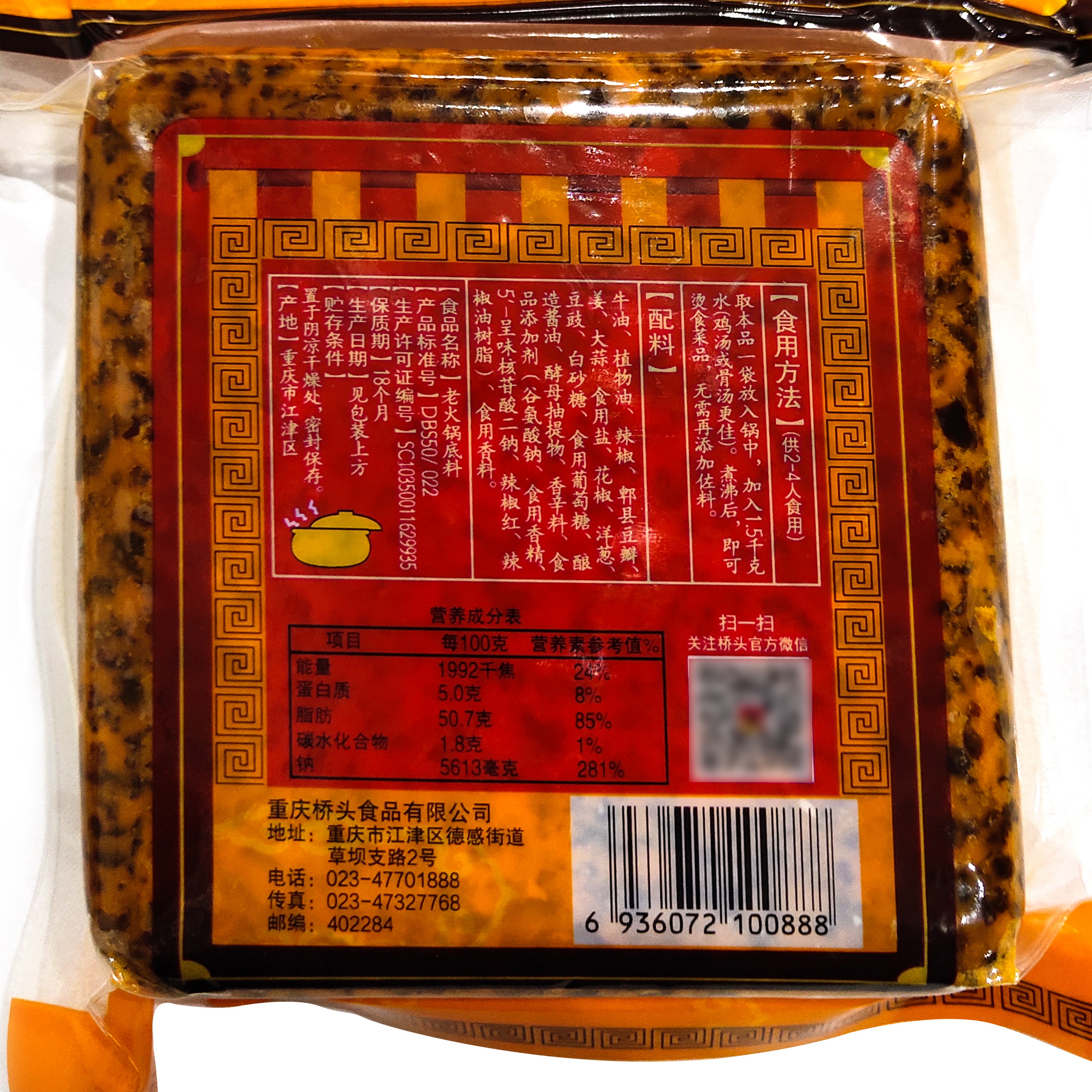 Authentic Chongqing bridgehead hotpot soup base 280g * 2 sesame oil 65ml * 4 groups of family members fried with spicy and fragrant pot