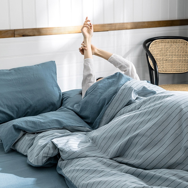 Nordic simple washed cotton four-piece set pure cotton 100 cotton striped quilt cover sheet fitted sheet summer bedding