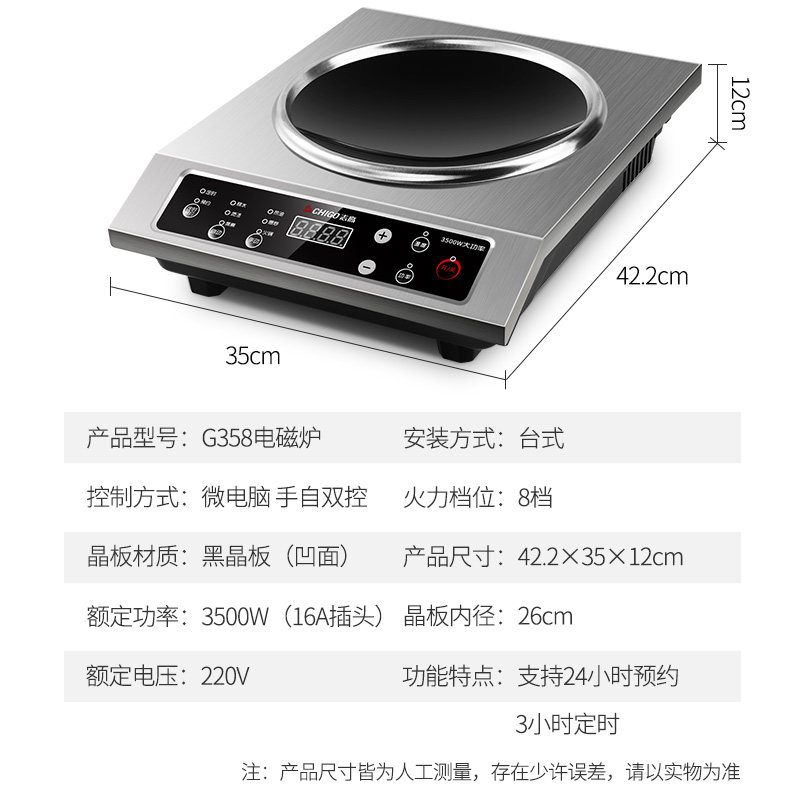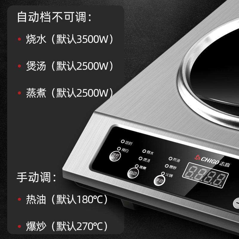 Zhigao induction cooker high power 3500w commercial concave stainless steel electric frying stove Hotel household stir-frying fire power