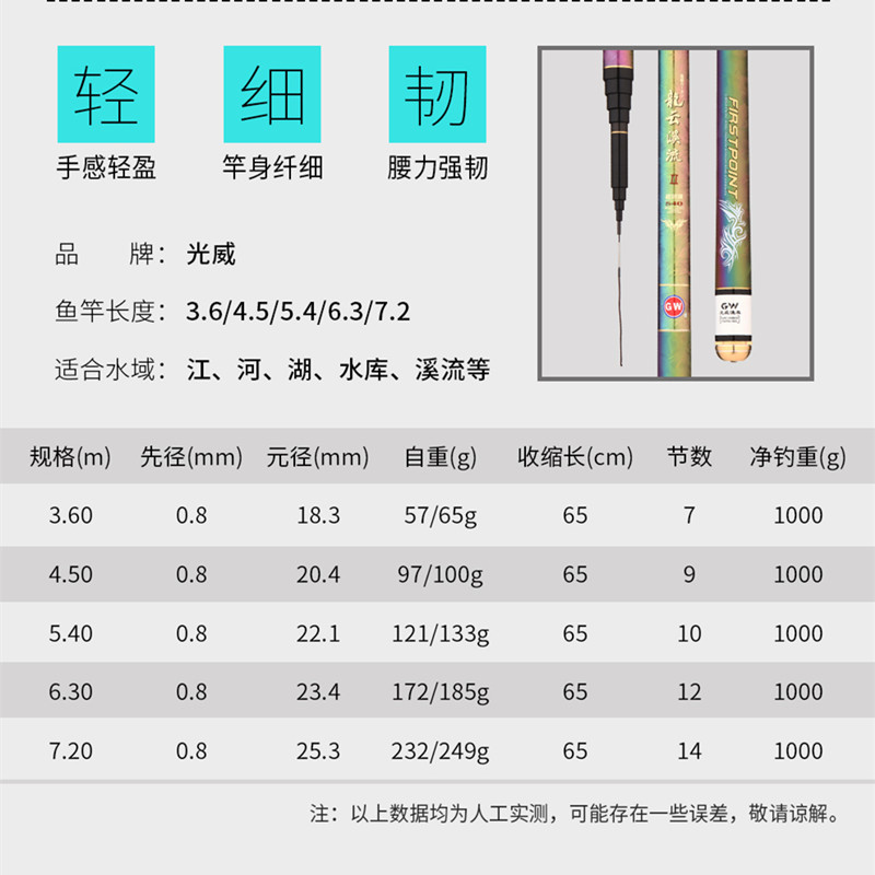 Guangwei fishing rod Longyun second-generation stream rod short-section hand rod ultra-light super-hard fishing rod 28-adjustable Taiwan fishing rod carp crucian carp rod