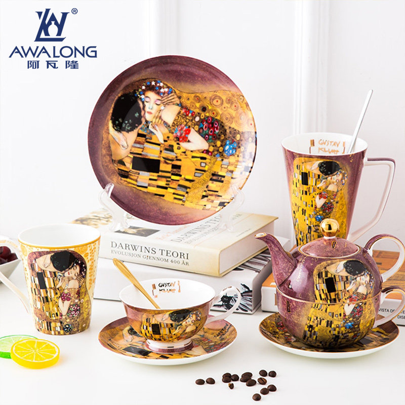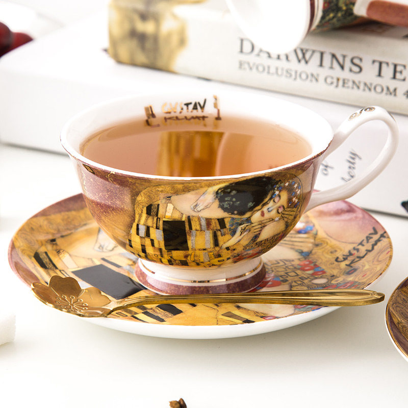 Mark Cup-Kiss Gold Leaf Coffee Cup Dish Kiss-Send Golden Cherry Blossom Spoon Kiss 8 Inch Disc High V Mark Cup-Kiss-Starry Gift Box Dress Send Gold Long Spoon With Raffi Grass Kiss-Mother-Mother Pot Gift Box Dress