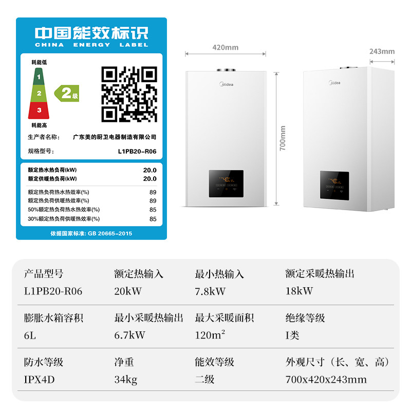Midea R06 gas wall hanging furnace natural gas home 26 intelligent dual-purpose heating furnace 20 floor heating heating water heater