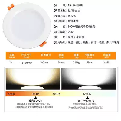 Foshan lighting LED downlight 3W ultra-thin hole light Living room ceiling ceiling light Embedded barrel light Aisle spot light