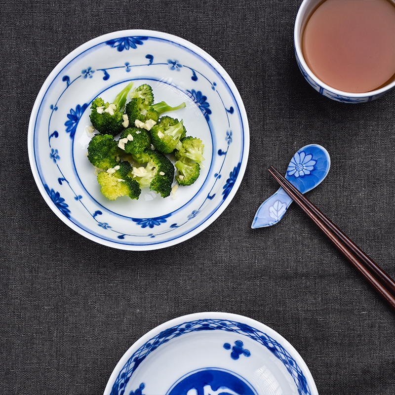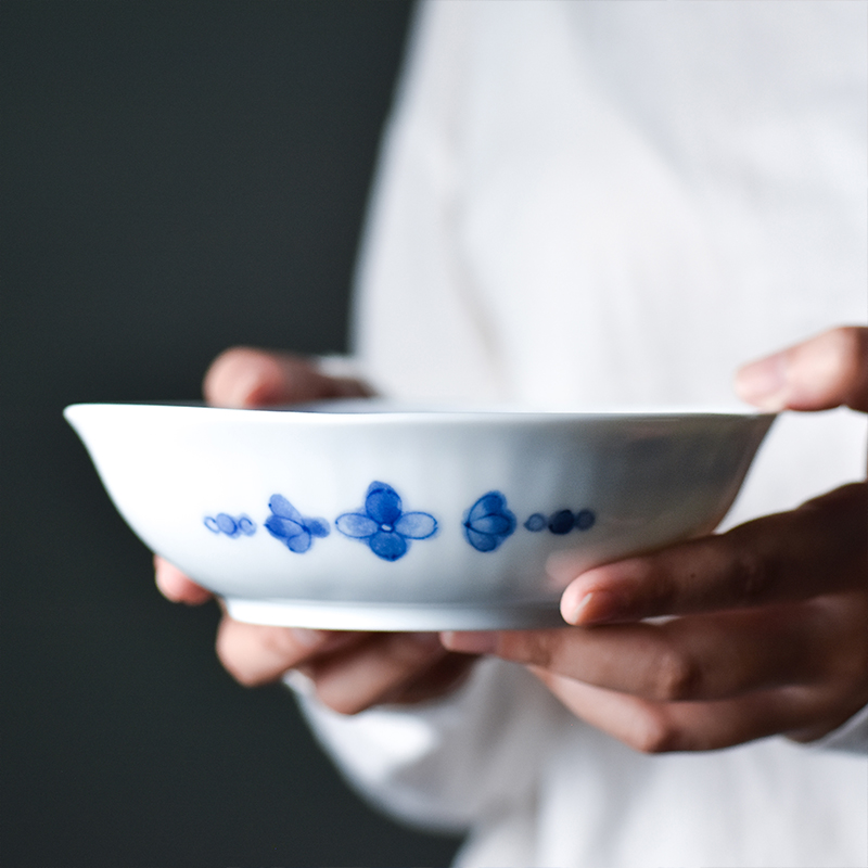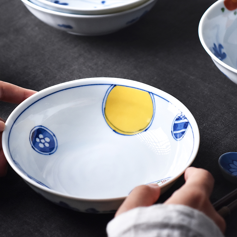 Pozzo See burnt green flower painted ceramic bowls five pieces of style cutlery Home rice bowls Bowl Salad Bowl Suit