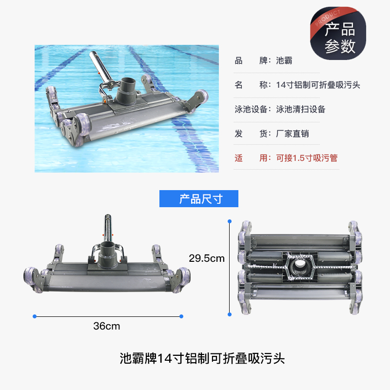 Pool Bully Swimming Pool Suction Dirty Head Suction Dirt Machine Accessories 19 Inch Aluminum Alloy Suction Dirty Cleaning Equipment Suction head handle