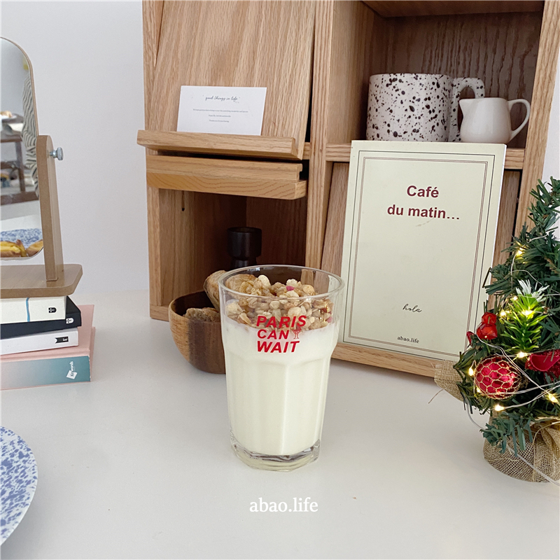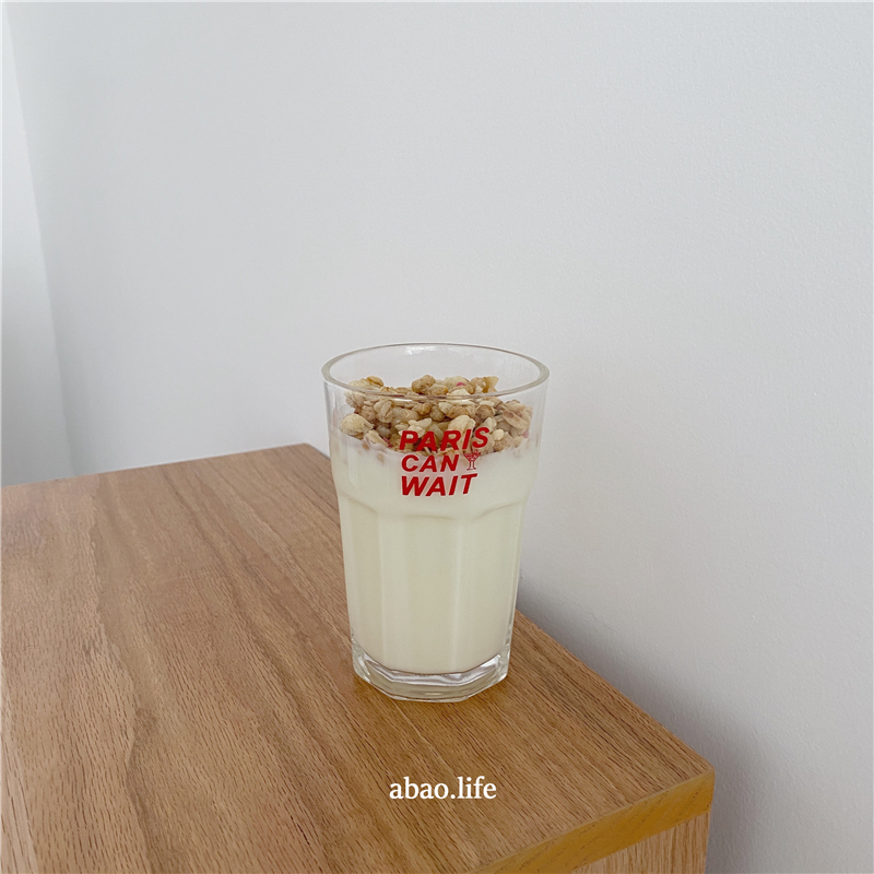 Po-homemade Korean ins simple large capacity Red English glass thickened heat-resistant milk juice coffee cup