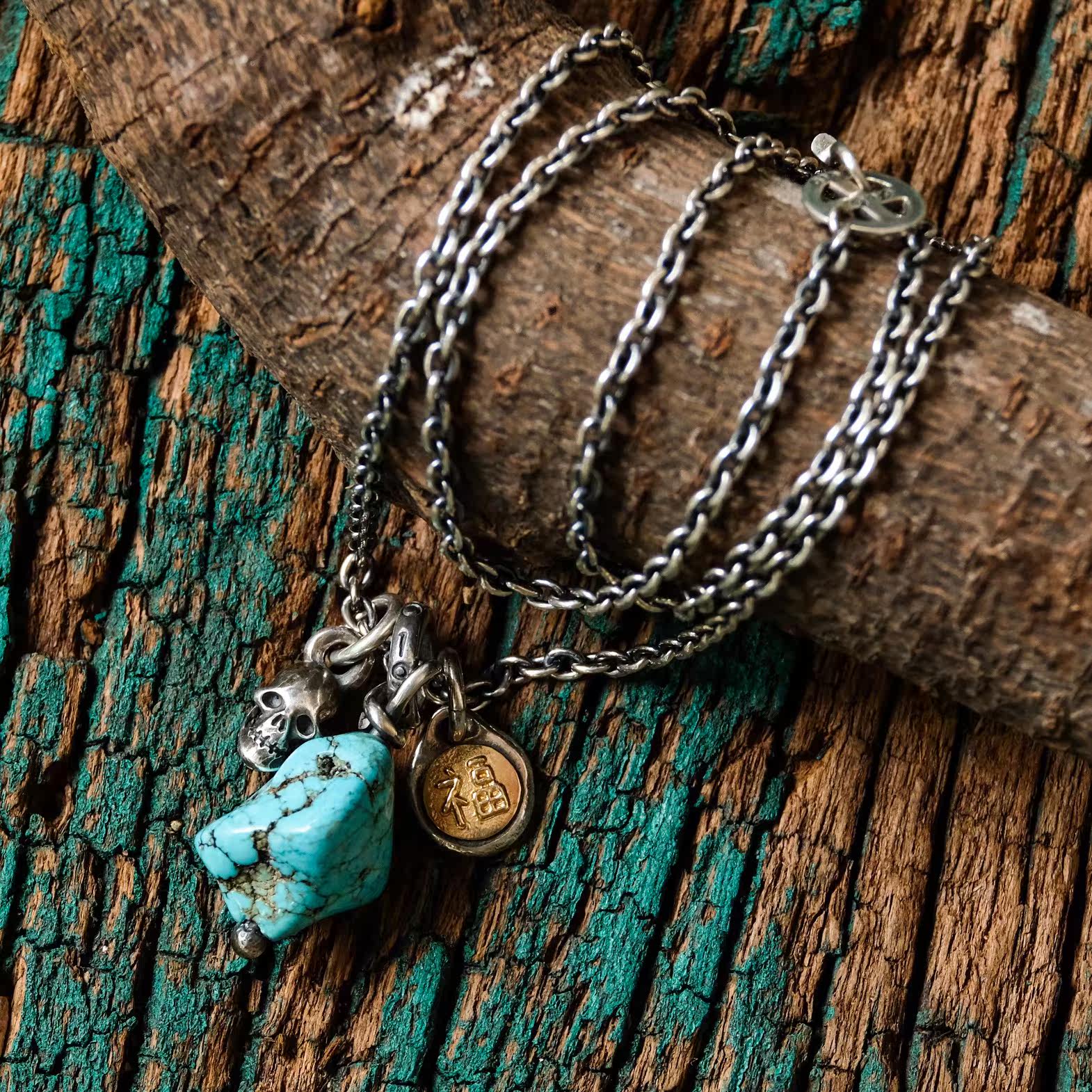 FATE CO Special Edition 18k Gold Lucky Character Pine Stone Skull Silver Wheel Necklace set