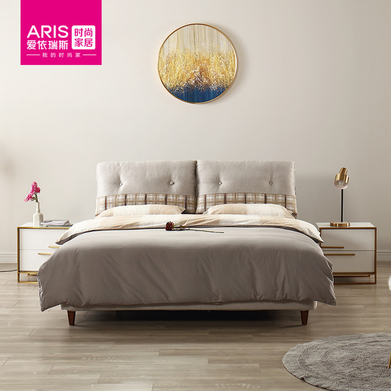 ARIS Airis Modern Simple Bedroom Furniture Colorblock Cloth Bed Double Bed Furika WFB-58