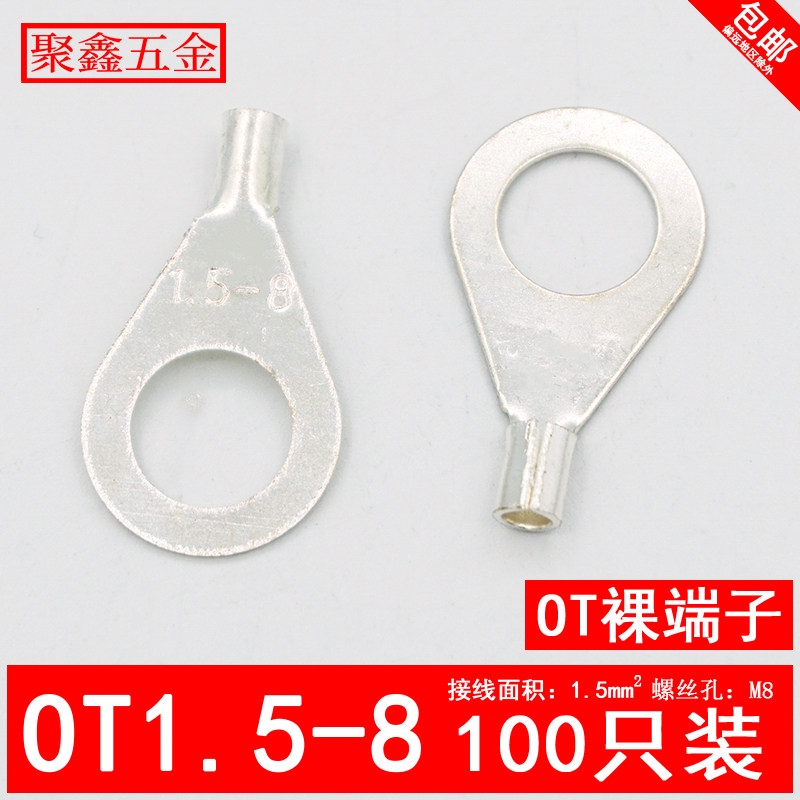 OT1 5-8 cold-pressed terminal O-type round bare end wire nose silver-plated 1 5 square copper wire ear 100