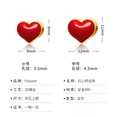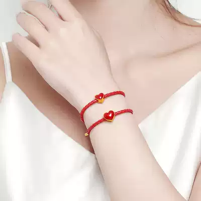 999 gold Love transfer beads gold hand female beaded red heart shaped pure gold scattered beads braided red rope women