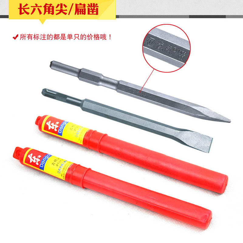 Dongcheng square handle four pit electric pick tip chisel five pit flat shovel round handle two pit two groove concrete long hexagonal pick brazing