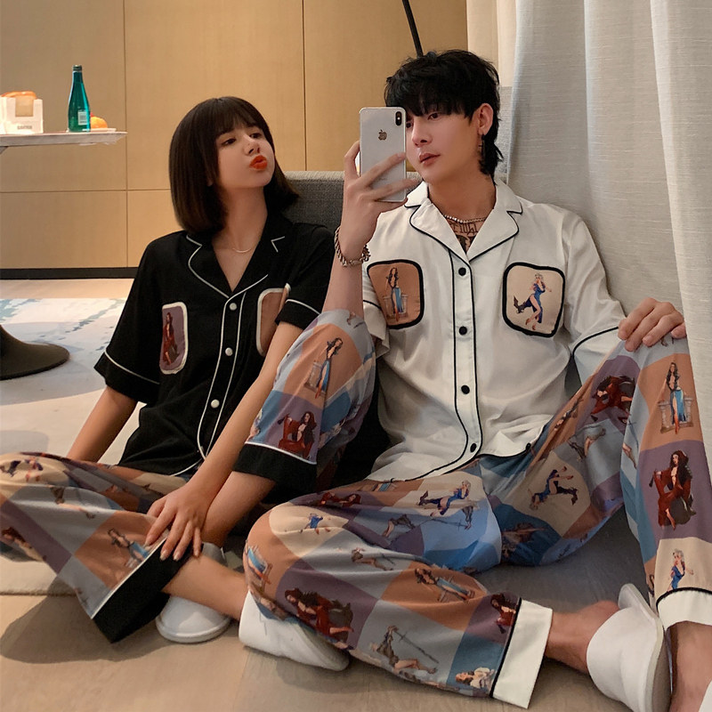 Online Red Couple Sleeping Women's Summer Male Damp Ice Silk Ins Thin size Sizes Sexy Korean version of the Spring and Autumn Home Suits Suit