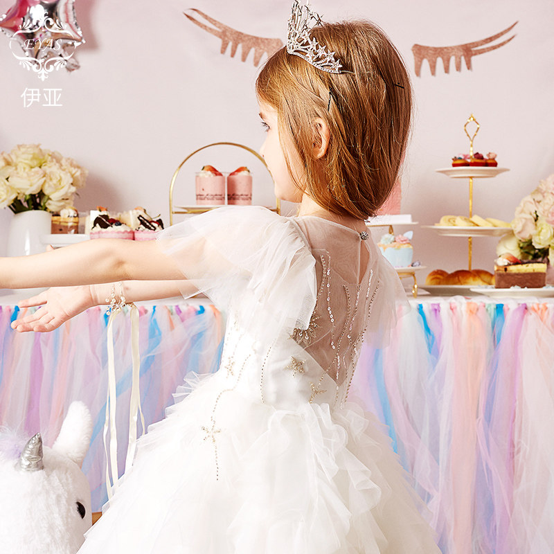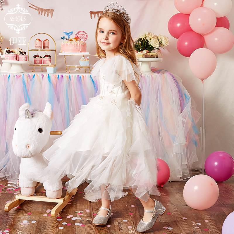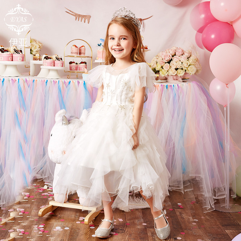 EYAS Playboy dresses LITTLE GIRL BIRTHDAY PRINCESS DRESS Skirt Foreign Pie Fluffy Dress Superfairy White Long Dress Children Act Out