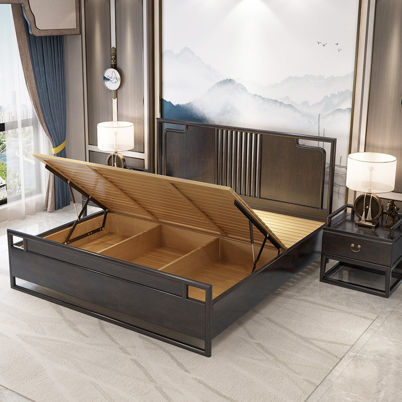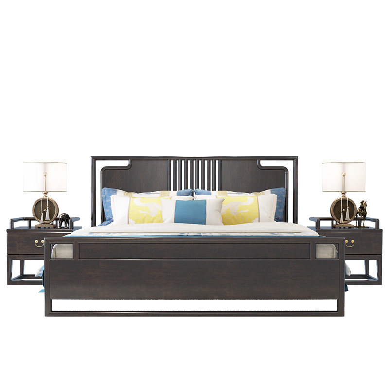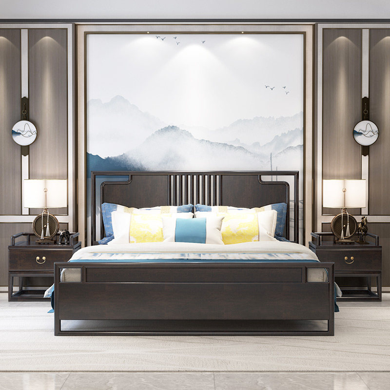 New Chinese style bed Zen solid wood double bed 18m Chinese style high-end master bedroom modern light luxury wedding bed king bed
