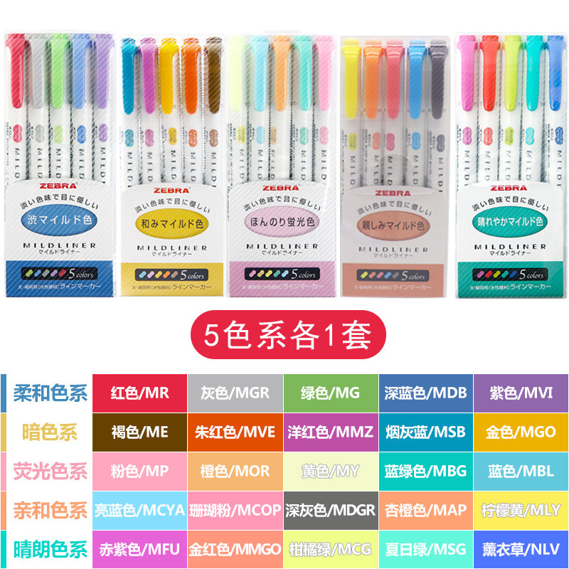 5 color original suit sets each set (total 25 colors) 25 color fluorescent pen (without shell fit) fluorescent 5 color suit (5C) affinity color N-5C clear 5 color suit (HC) soft 5 color suit (