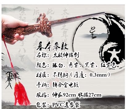 Tai Chi telescopic sword shrinkage performance folding morning exercise fitness boys and girls props alloy plastic stainless steel