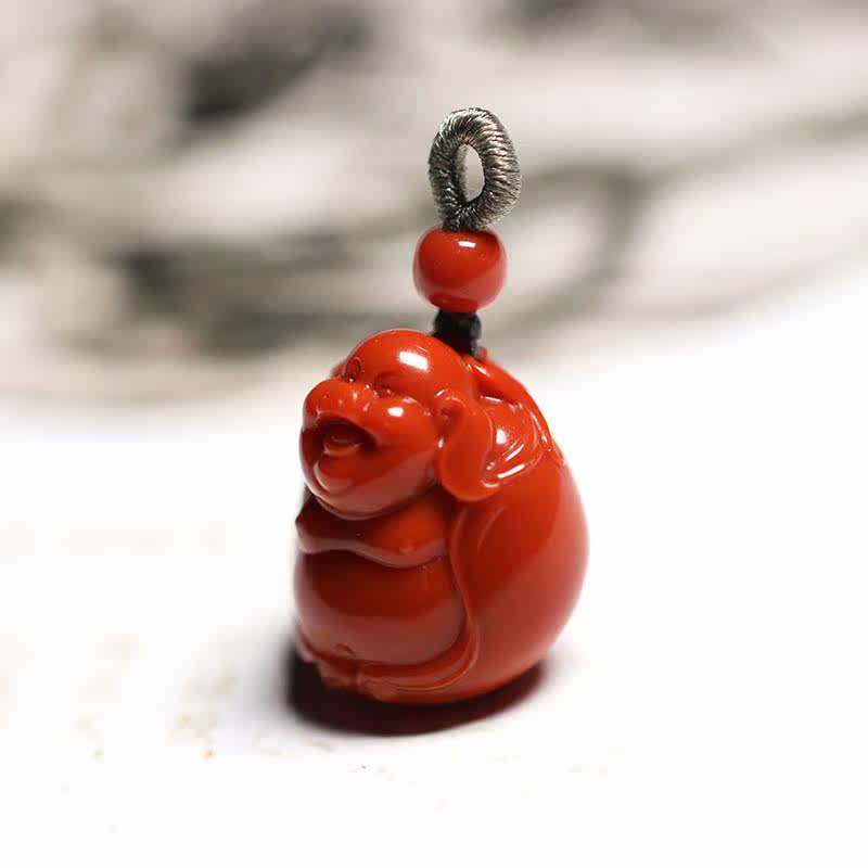 Nanhong agate lucky pig pendant pendant, wasi material, pure color package slurry, Suzhou Gong Zhang Jiadong boutique hand-carved pieces