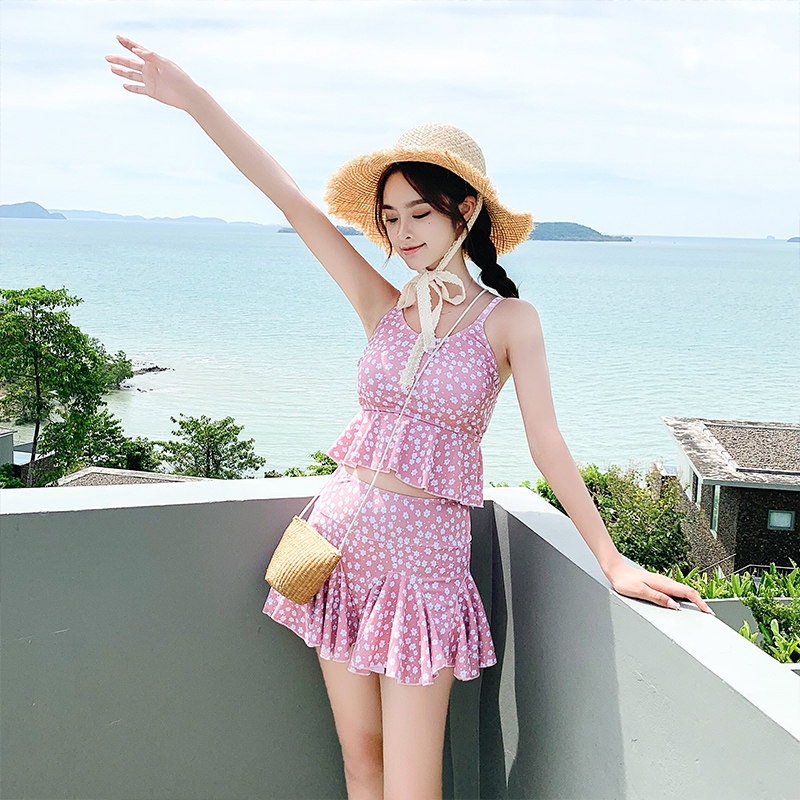 Swimsuit woman Three sets of conservative shading Slim Skirt Style Flat Angle Han Elementary Fresh Student Hood 2021 New