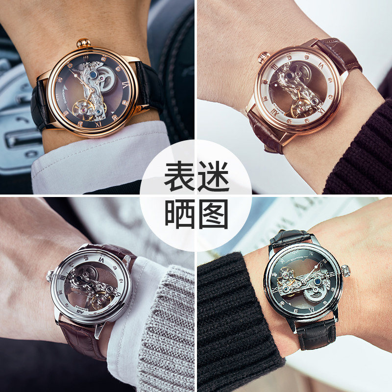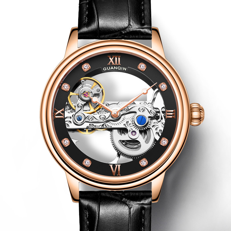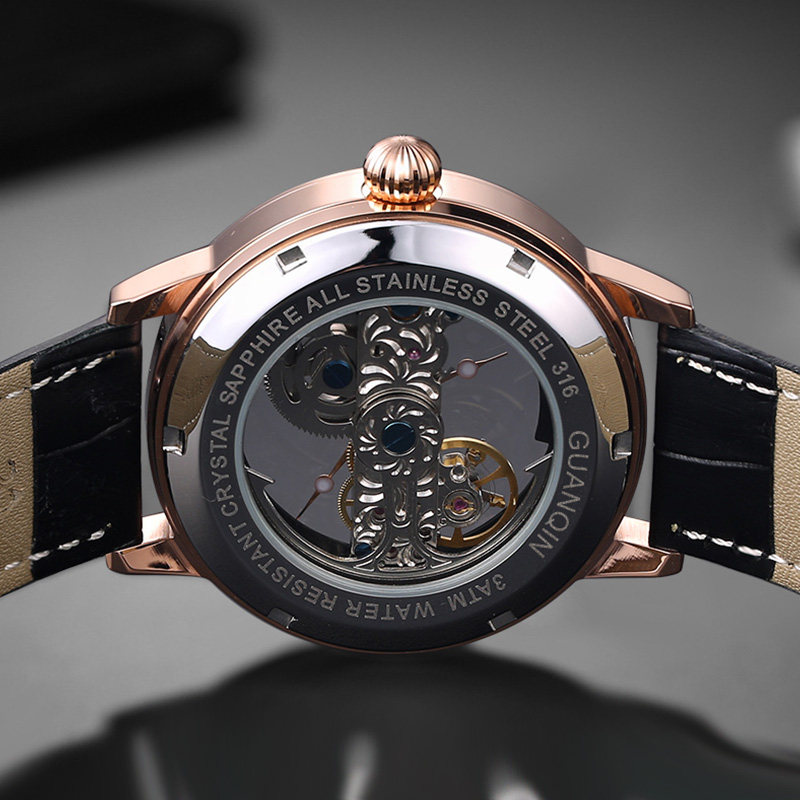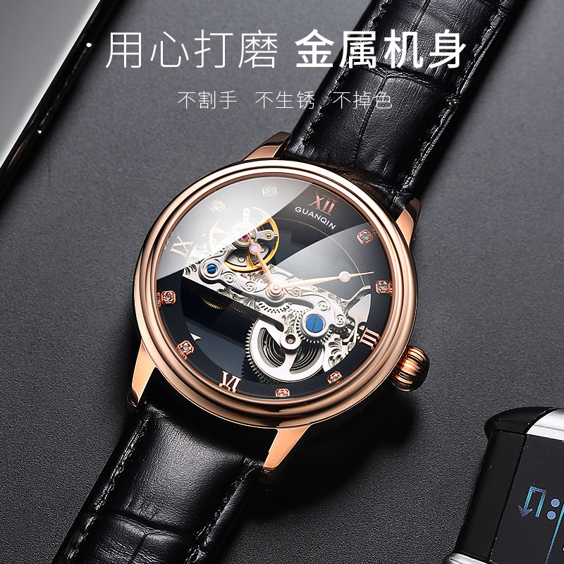 Guanqin new watch men's automatic hollow tourbillon mechanical watch Waterproof luminous leather belt men's watch tide