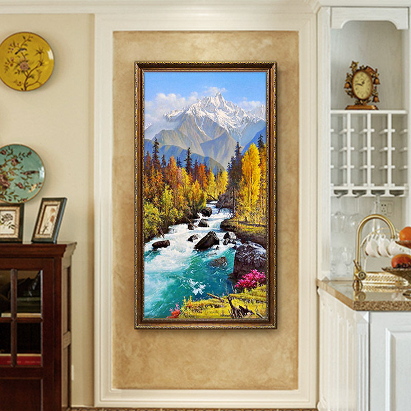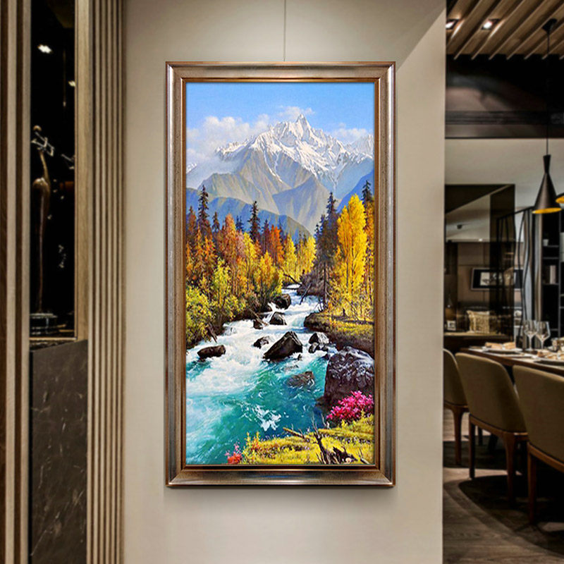 Yyeonghua pure hand-painted oil painting European-style landscape scenery Xuanguan Living room sofa wall Vertical version Snow Mountain Decorative Painting