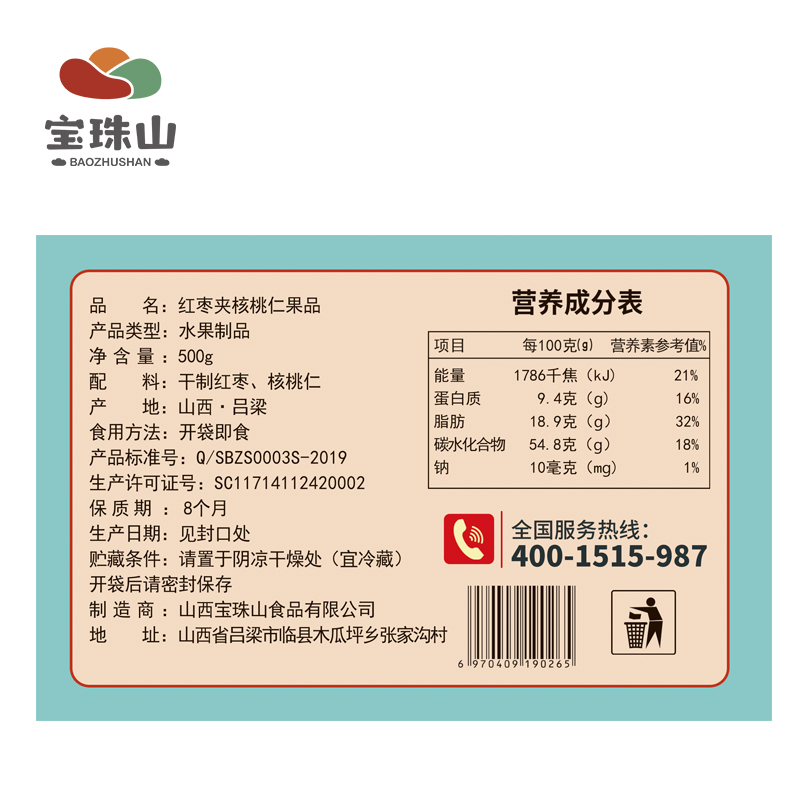 Baozhu Shan Red Date Clip Walnut Walnut 500g * 3 Bag red date Zika with sandwich hug and dried fruit snacks