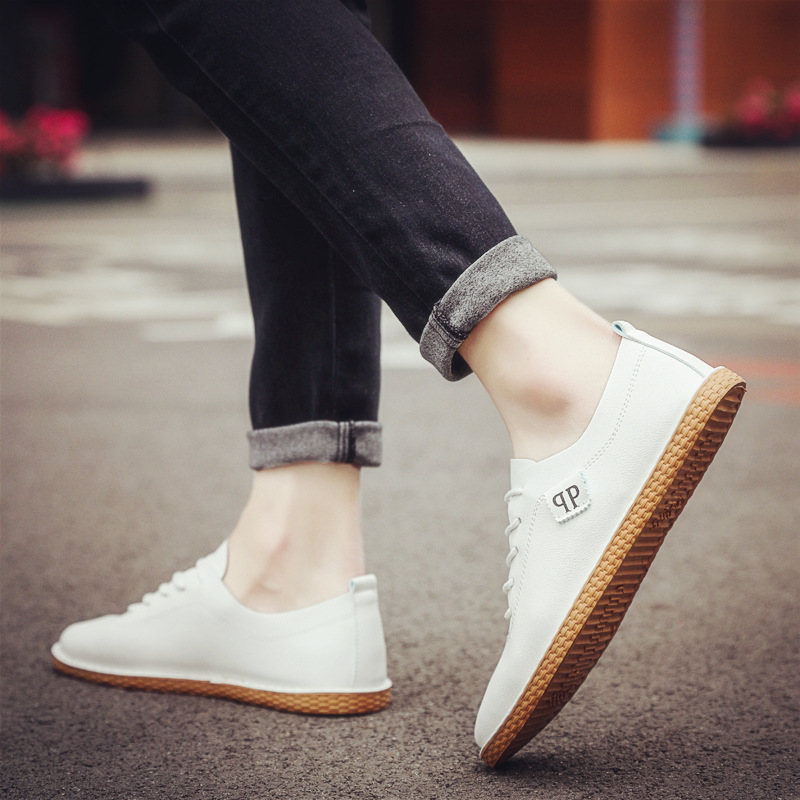 Hong Kong Chaos 2022 Spring Summer New social spirit Small men's shoes breathable hollowed-out leather shoes 100 hitch a little white shoe