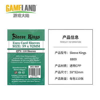 Game mainland board game accessories protection card cover Sleeve Kings transparent 6 Silk 110 card set