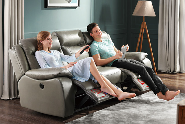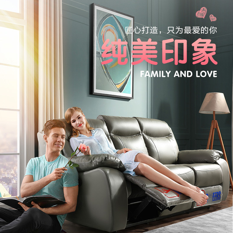 Cabins of Sesame Bloom's Living Room Living Room Small Family Real Cow Leather Bilateral Modern Eurostyle Electric Functional Sofa Combined 5982
