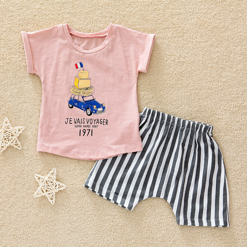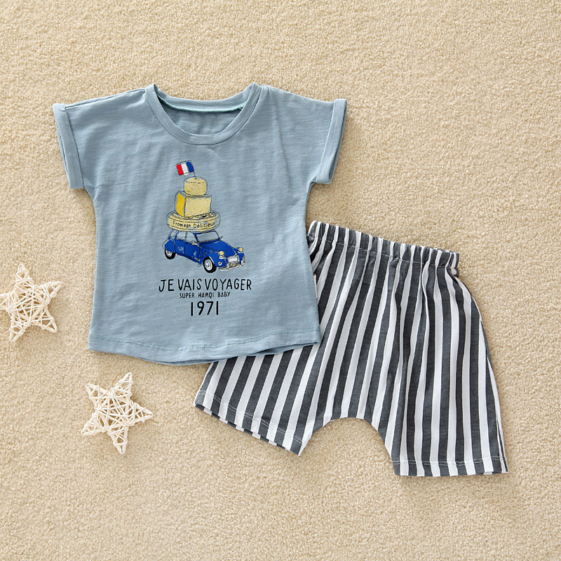 Hamic male baby short sleeve suit newborn summer out for baby cartoon T-shirt shorts summer load