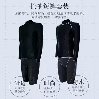 Two-piece Men's swimsuit set adult hot spring belly thin conservative anti-embarrassing quick-drying boxer swimming trunks two-piece set