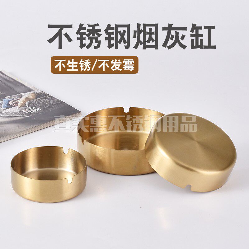 Tobacco Ashtray Retro Golden Stainless Steel Ashtray Home Hotel Living Room Guesthouse Minimalist Creative Custom Print LOGO