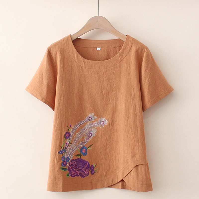 Middle-aged women's large-size mom 2021 new summer cotton short-sleeved t-shirt middle-aged woman foreign-air-fat mother
