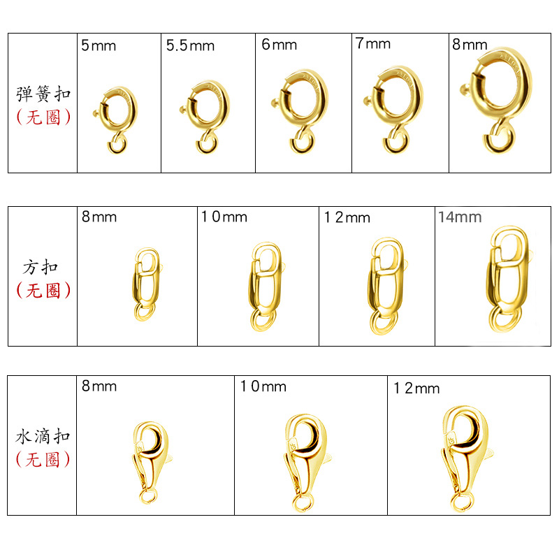 14K bag gold open ring lobster knife buckle necklace bracelet bracelet DIY accessories