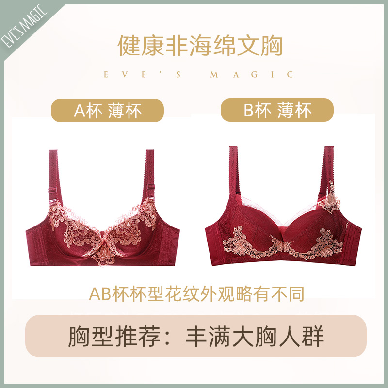 Eve's Show Embroidered sexy underwear Women's rimless gathered bra Adjustable upper collection sub-breast bra