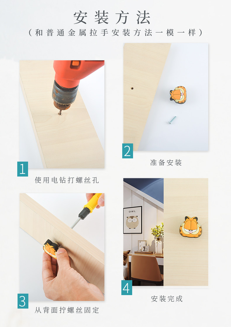Children's room cartoon handle bedside table anti-collision cute animal handle drawer wardrobe door child kindergarten handle