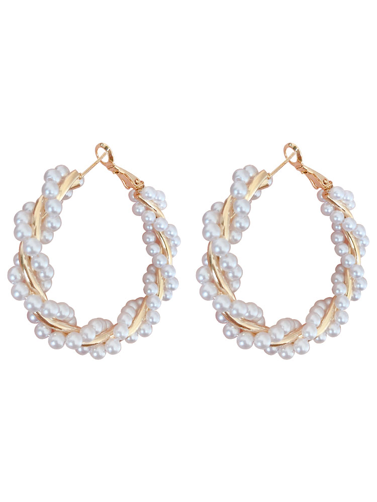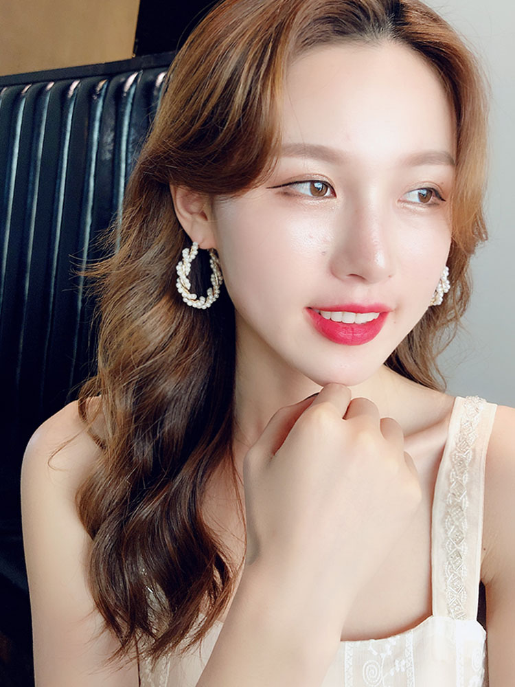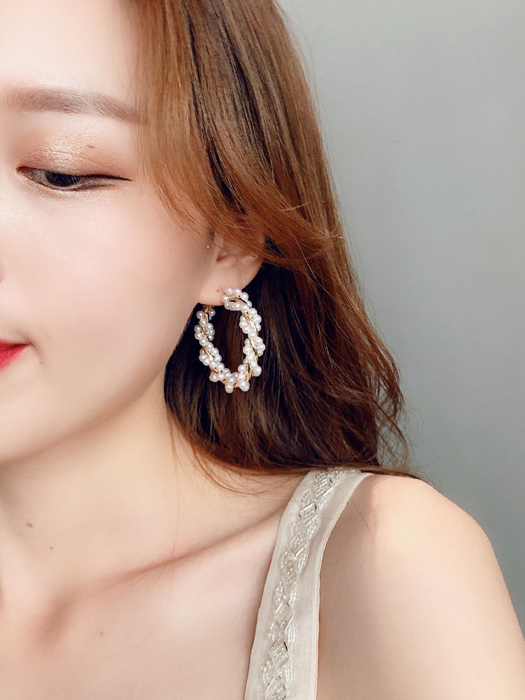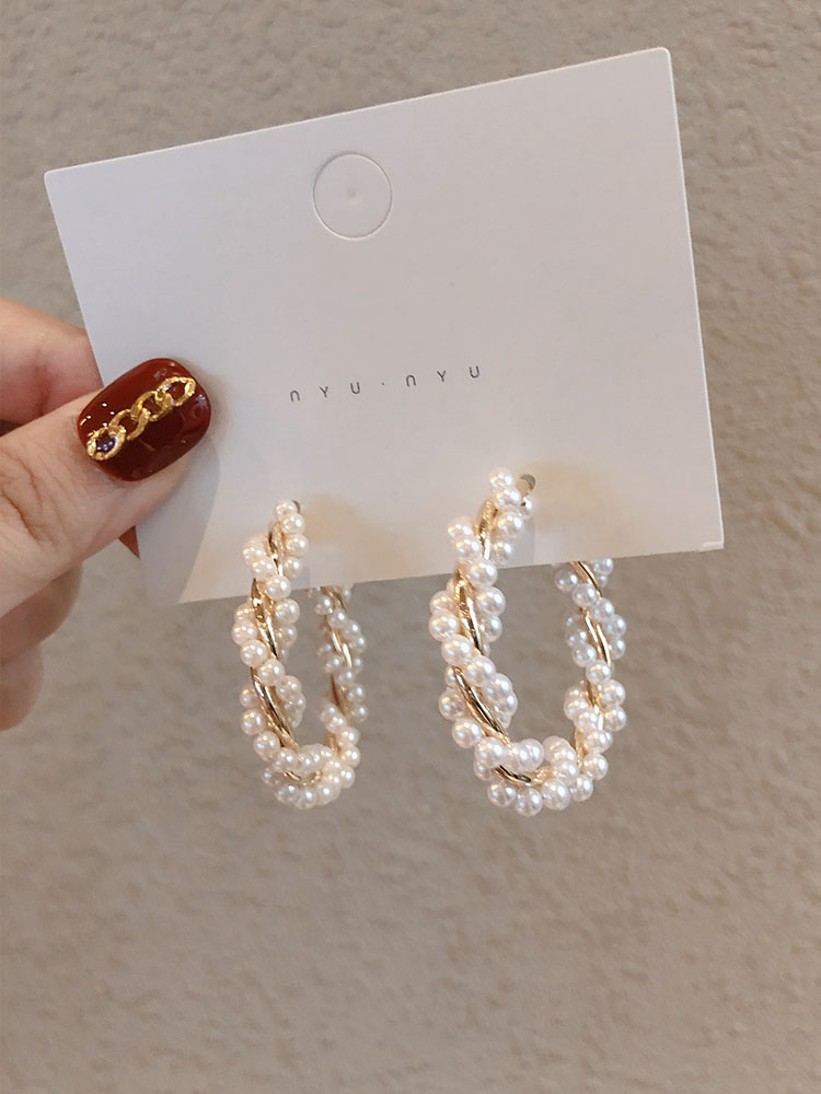 Earrings 2022 new trendy Korean niche pearl earrings winding big earrings women's French net red high-end sense earrings