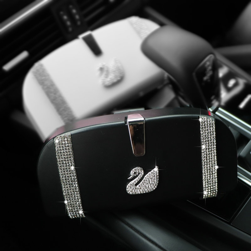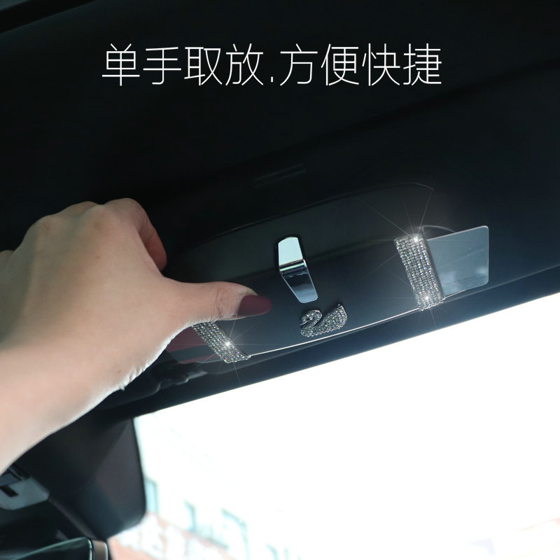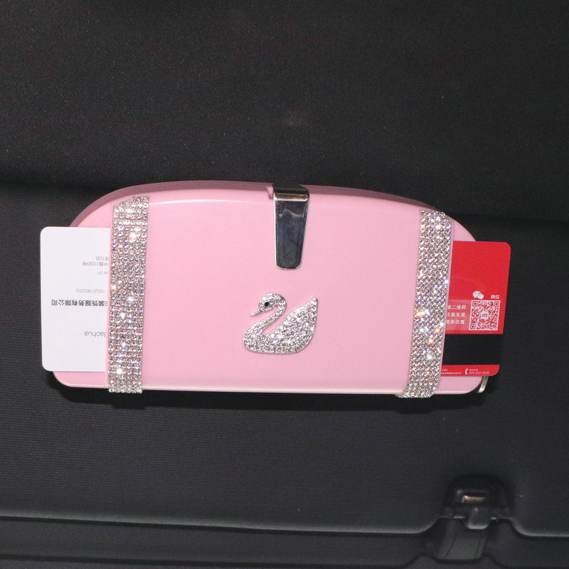 Fashion swan diamond-encrusted glasses box Car visor bill glasses clip multi-purpose car glasses storage box Female