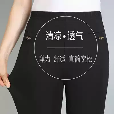 Mom pants women's summer thin nine-point middle-aged and elderly large size summer loose high-waist elastic waist casual women's pants