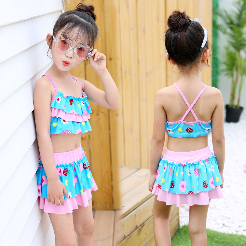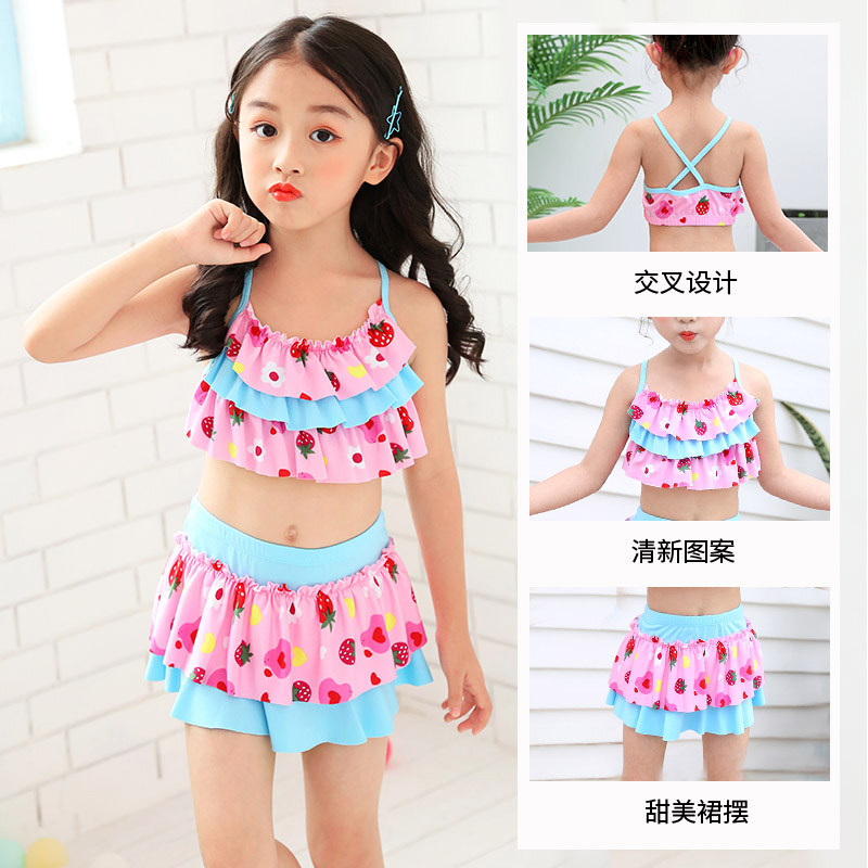 Children's swimsuit Women's two-piece CUHK Cute Skirt Style Baby Swimsuit Suit Elementary School Student Korean Version Girl Swimsuit