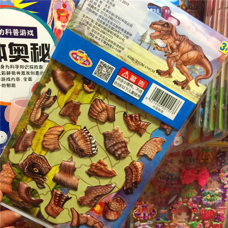 Kindergarten Boy Children Creative Stickers Puzzle Toy Dinosaur Solid Cartoon Bubble Applii 3D Adhesive Puzzle