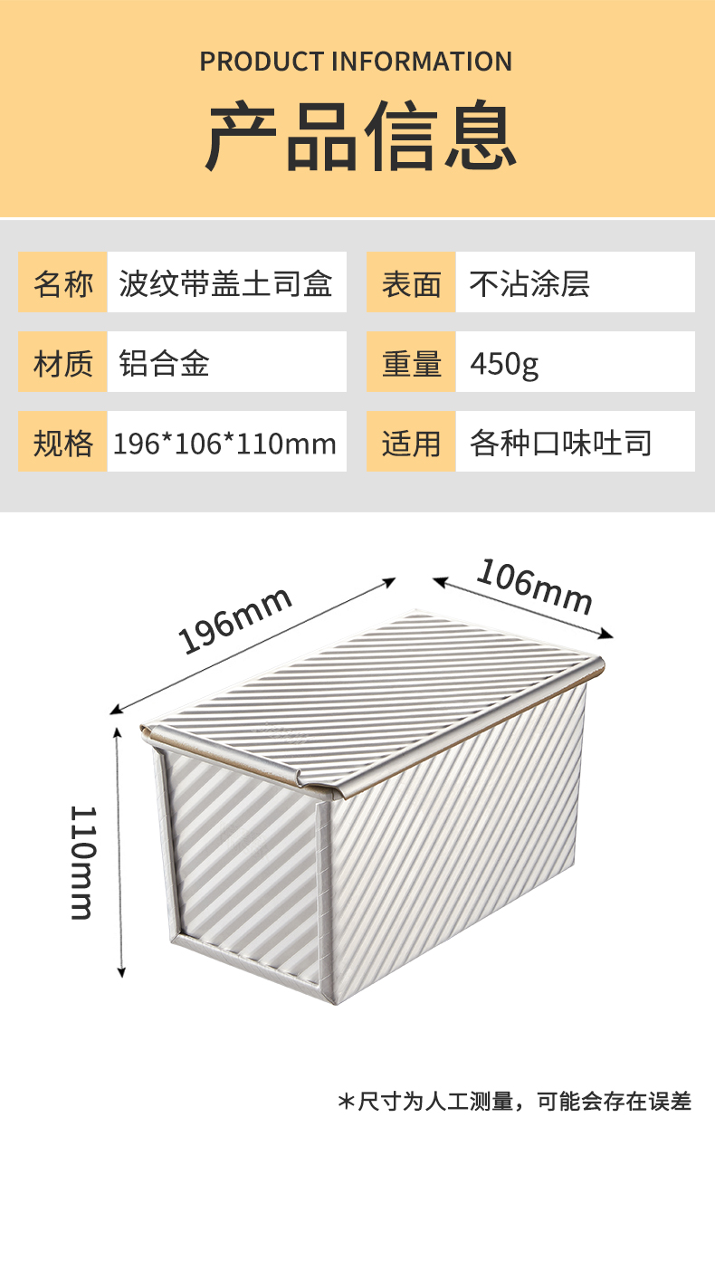 Hamasen HMSBK golden corrugated toast box not stained with rectangular with lid 450g bread box baking mold
