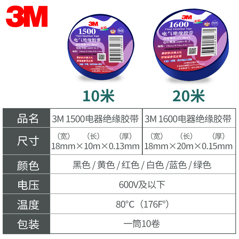 3m electrical adhesive tape insulation tape waterproof high temperature flame retardant wire lead-free electrical PVC acid and alkali resistant wire tape
